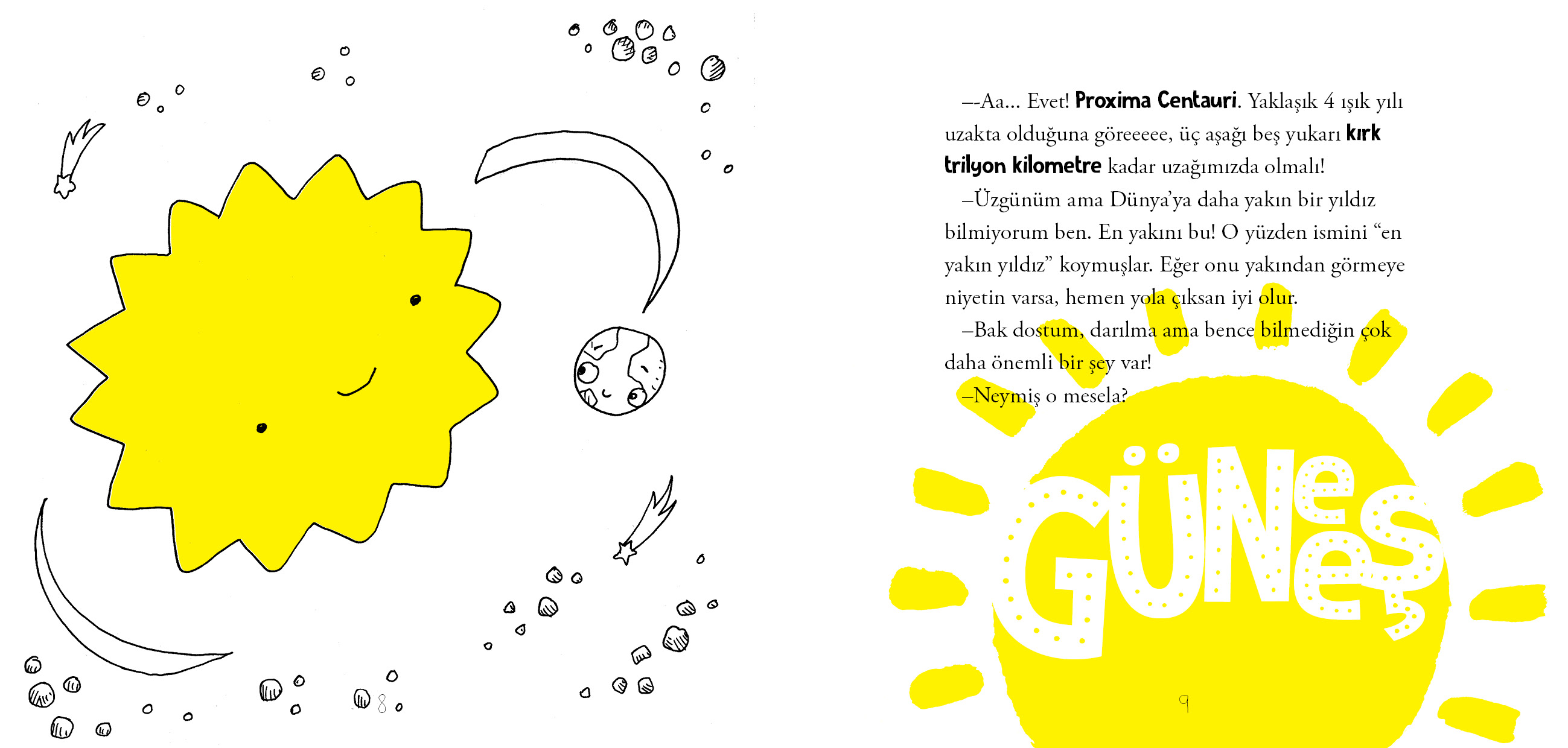Güneş, Dünya gibi dağlardan taşlardan, kıtalardan oluşmaz. O dev boyutlarda bir gaz kütlesidir. Sürekli fokur fokur kaynayan, bir yandan da akıl almaz şiddette patlamalarla etrafa enerji saçan bir gaz topu!