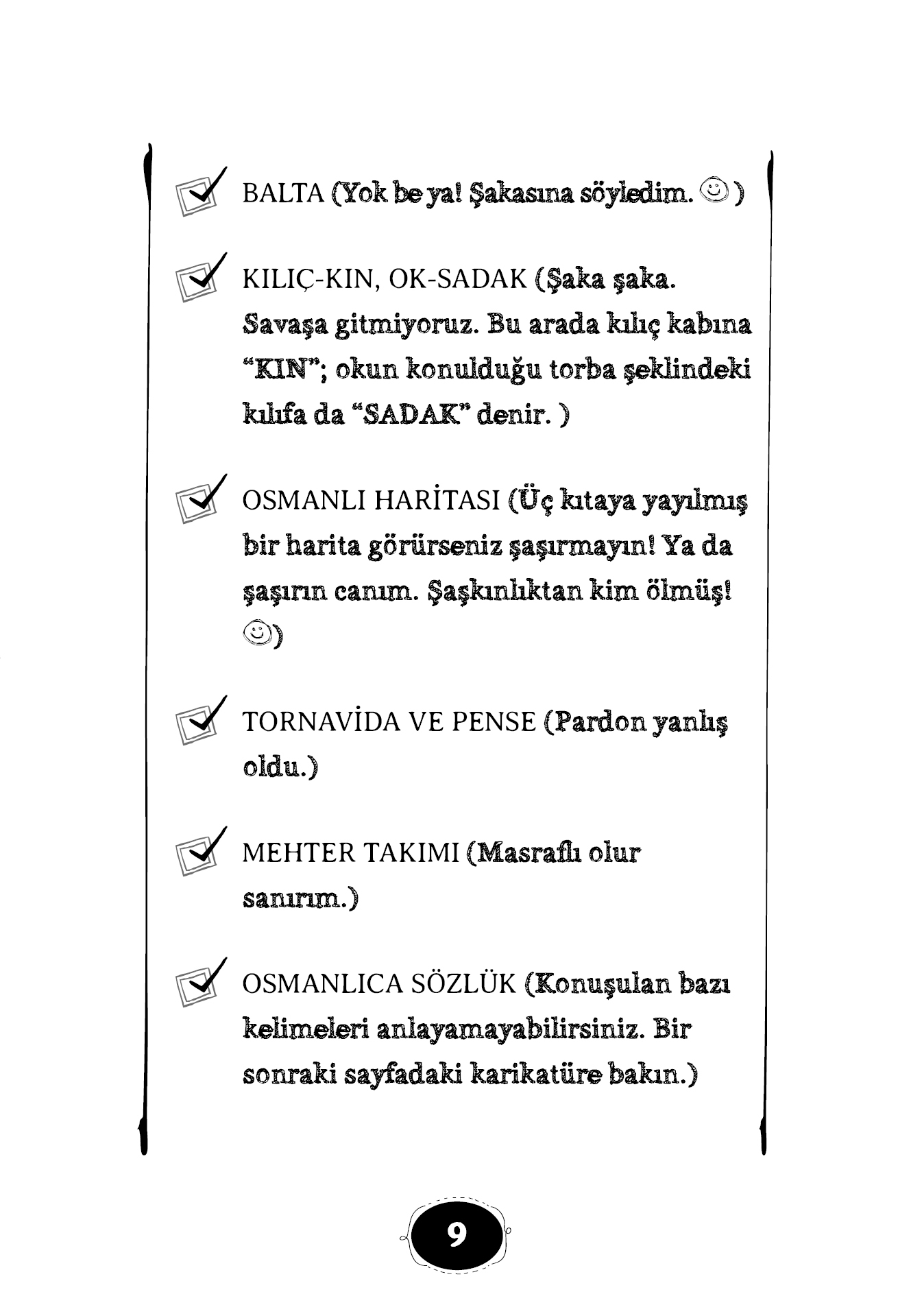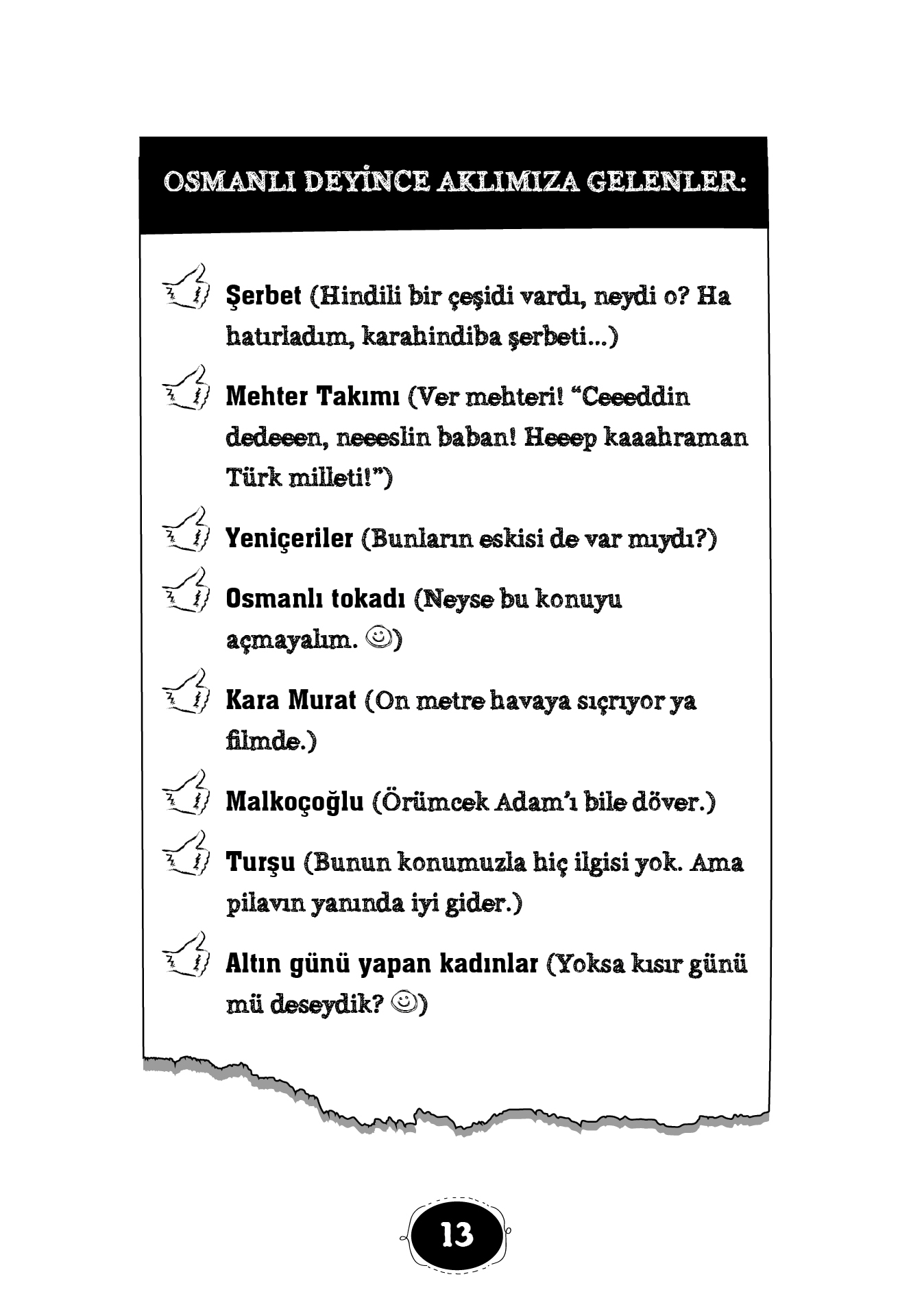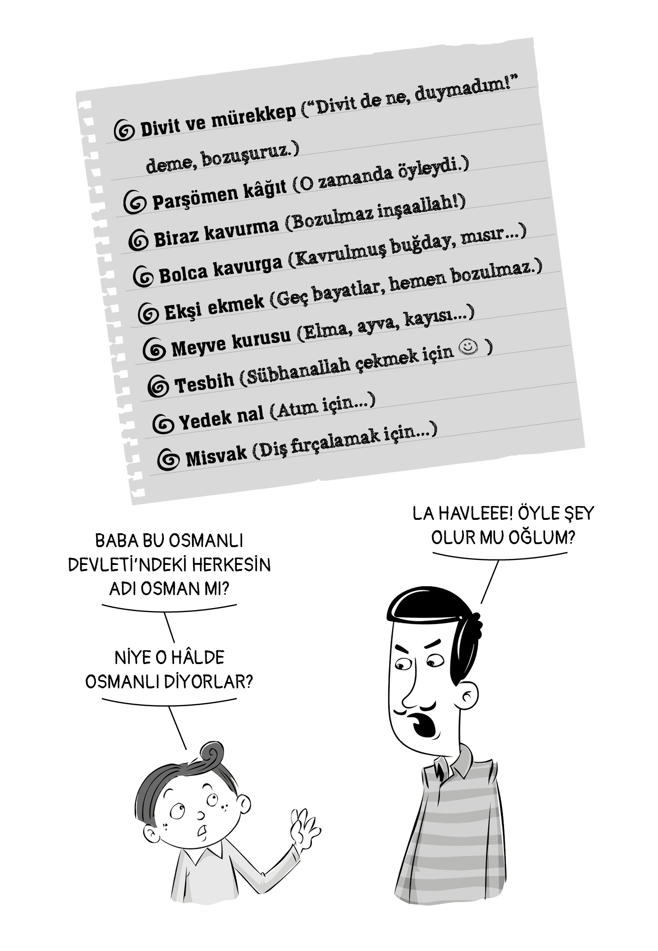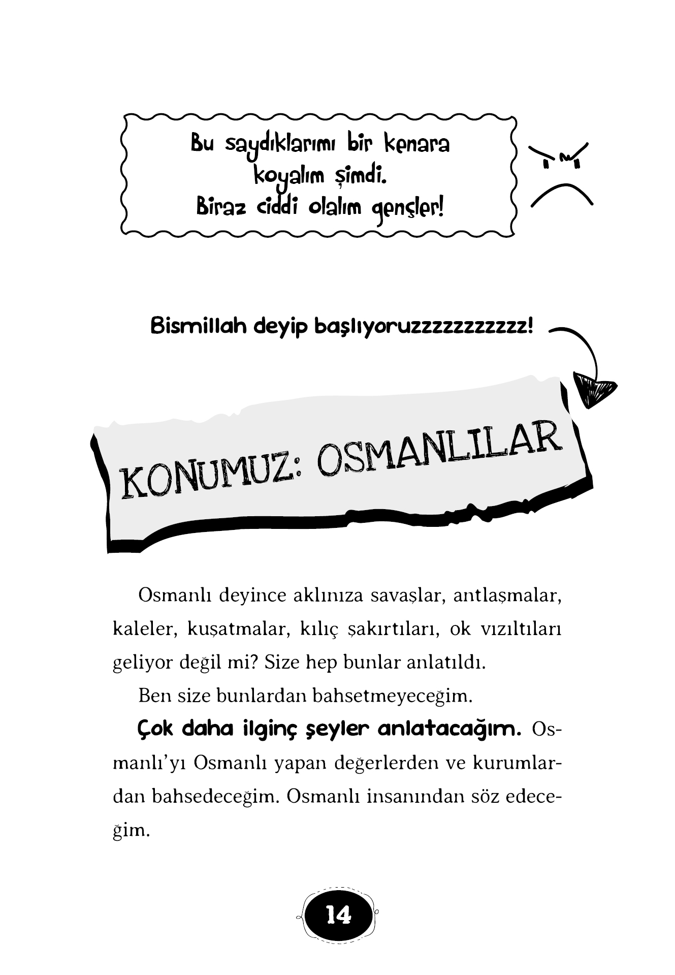 Sadaka Taşlarını duydunuz mu? (İhtiyaç sahiplerinin alması için üzerine para bırakılan taş.) Okula başladığında sana tören düzenleselerdi ne düşünürdün? (Osmanlı’da öyleydi.) Dünyanın ilk hayvan hastanesini kim kurmuş biliyor musunuz? (Osmanlılar!) Bir evde hasta olduğunu nasıl anlarsınız? Osmanlı’da kapı tokmakları akıllı mıydı? (Gelen, kadın mı erkek mi ayırt ediyordu.) Peki hayvanlar emekli olur mu? (Şaka yapmıyorum.) Ve daha neler neler! BU OSMANLILAR GERÇEKTEN MUHTEŞEM...